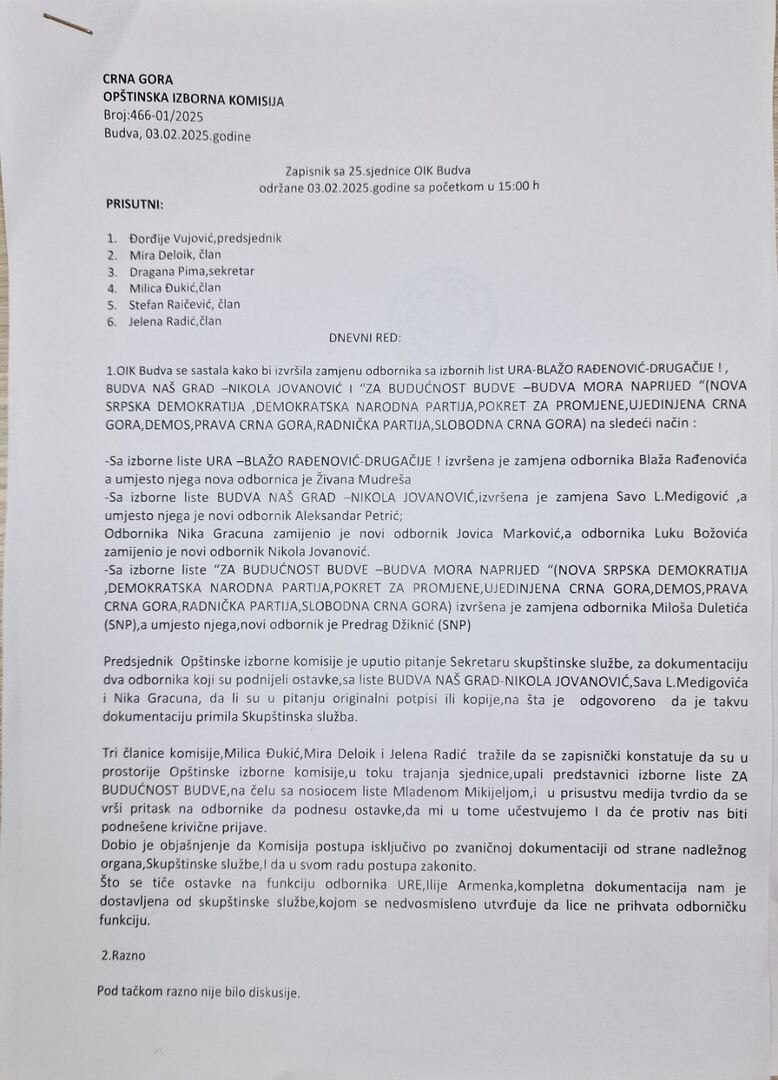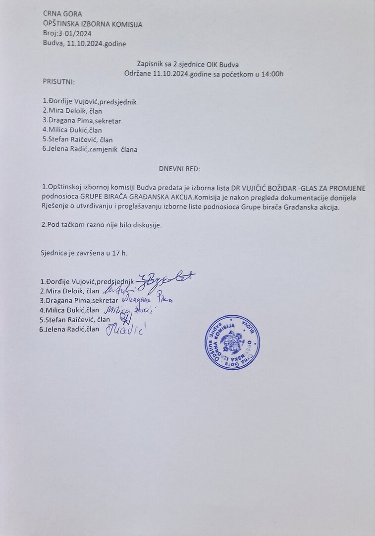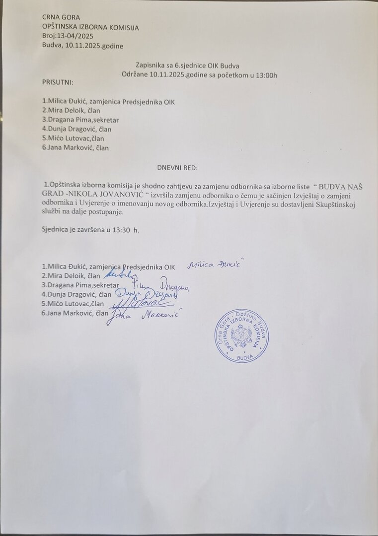 Zapisnik sa VI sjednice OIK Budva