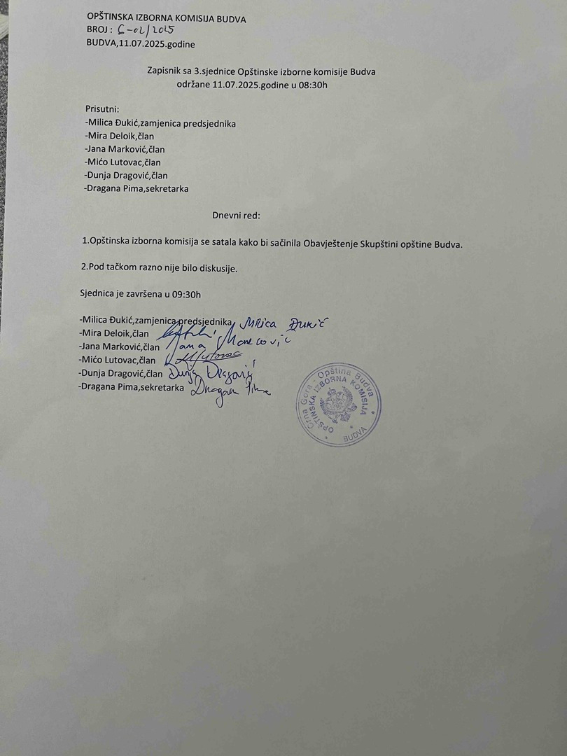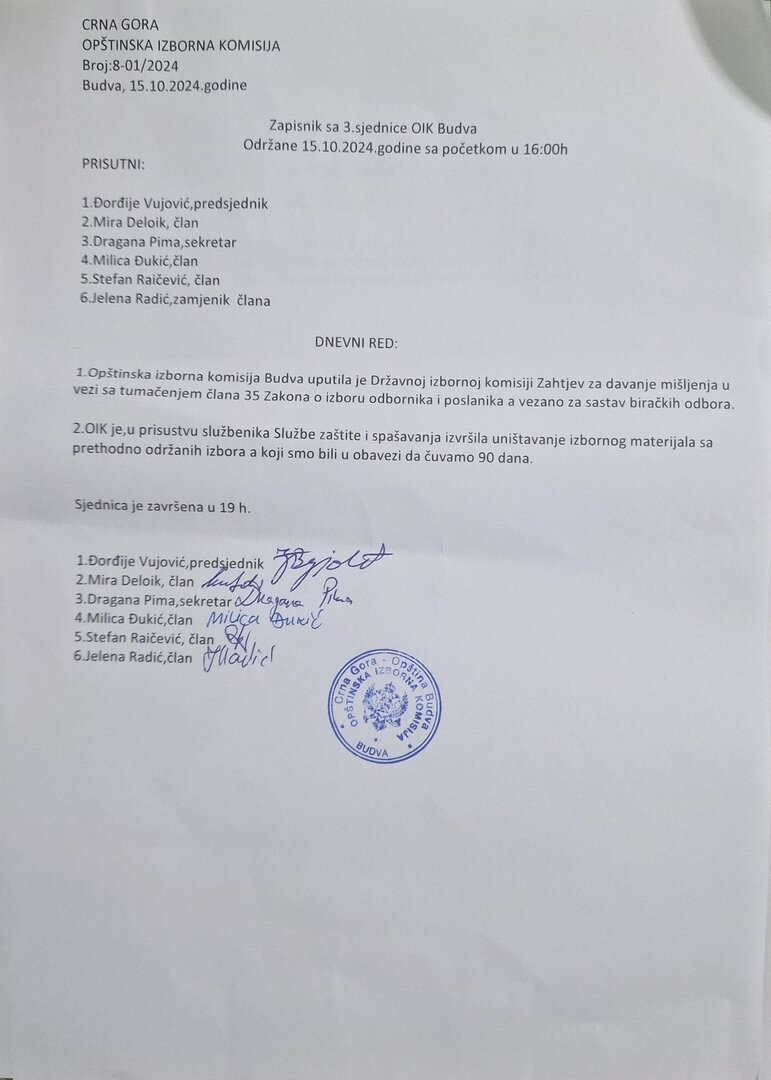 Zapisnik sa III sjednice OIK Budva