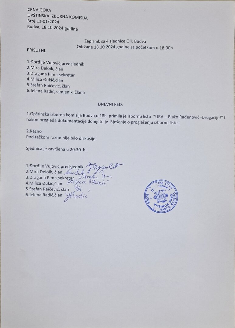 Zapsinik sa 8 sjednice OIK Budva održane 26.04.2024 sa početkom u 18:00č