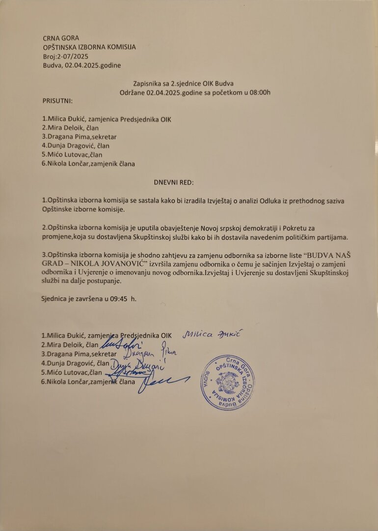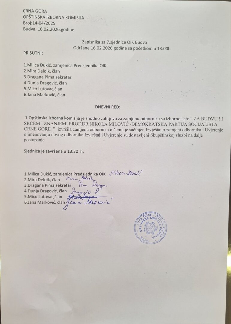 Zapsinik sa 7 sjednice OIK Budva